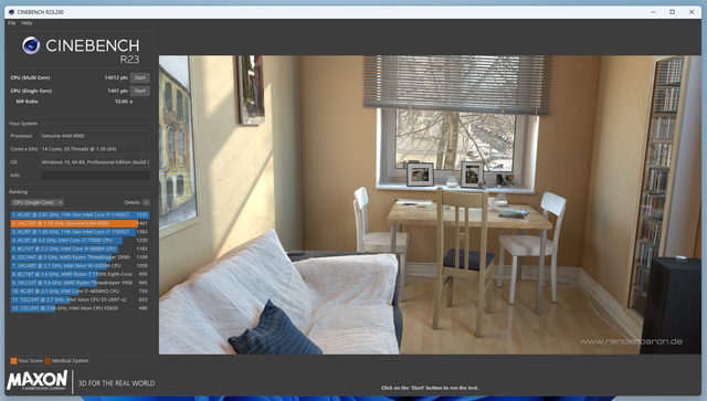 考核CPU性能的CinebenchR23,跑分数据如下: