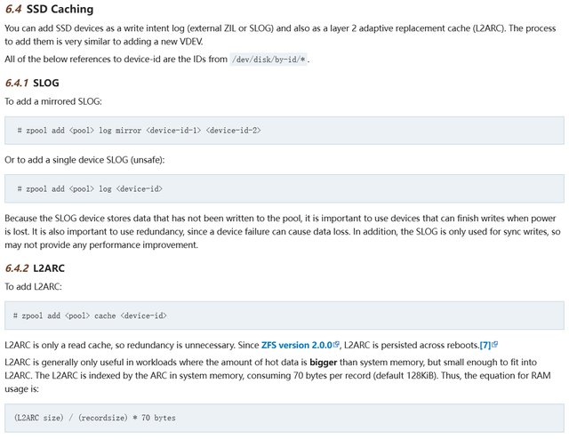除了在数据管理和修复上的优势,ZFS还有现成的SSD加速缓存工具,可以轻松将固态硬盘为机械硬盘,这点相当重要,毕竟几T的纯SSD环境成本实在太高了,SSD Cache的效率不算差,足够我使用了。