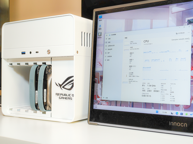 虽然整机看起来粉嫩小巧,其实内心是一块十四核二十线程的i5-13500T暴力CPU,同时背部还有着一张双口万兆电口,容颜和内在极具反差感,哈哈。