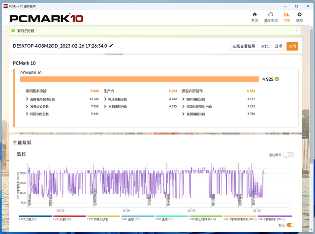 最后是偏向综合性能的PCMark10,最终分数为4925。
