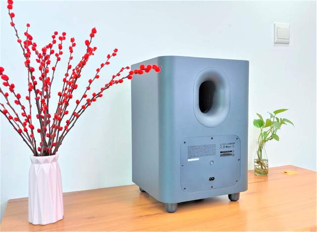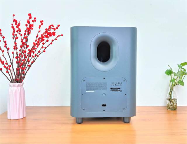 而低音扬声器则以方正造型为主,流畅的机身线条,背面配备弧形的凹槽,给人科技感满满的环绕声体验。底部配备四个支撑脚,保证装备牢固不移位。而且,喇叭纸盘底部拥有低音振膜,让震撼的音效发挥得淋漓尽致。