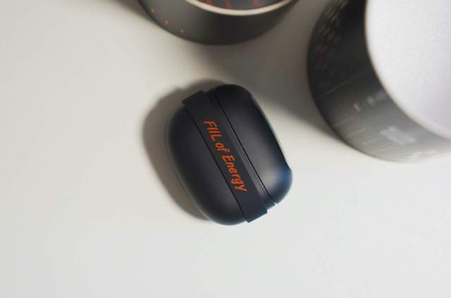 FIIL耳机首次采用了豆式半入耳款式,耳机柄的样式也做了大的突破,外观像一个肥肥的感叹号,方便手持的同时也增添了几分卡通趣味。充电仓是较为传统的翻盖样式,但四周的圆角角度更大。翻转带在不用的时候可以箍在翻盖盖缘的下方,变成充电仓设计的一部分,看起来浑然天成,毫不违和。