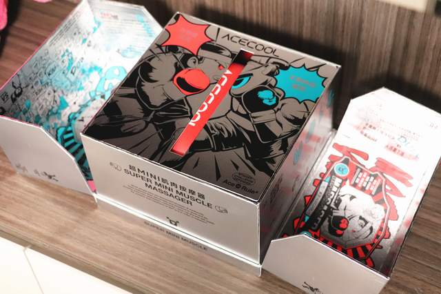 这只ACECOOL粒子重塑筋膜枪的外包装就给人眼前一亮的感觉,设计得很有个性,两侧翻盖的“擂台”礼盒设计,印制有很多的动漫元素,非常时尚,让人非常有拆礼物的仪式感。