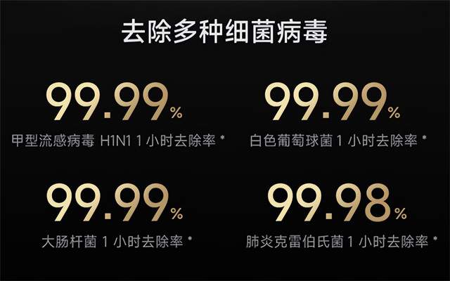另外,米家全效空气净化器的对向紫外灯组采用高强反光铝膜镀层,实现全幅照射,紫外线物表杀菌效果>99.99%,可去除多种细菌病毒,如甲流H1N1、白色葡萄糖球菌、大肠杆菌等。