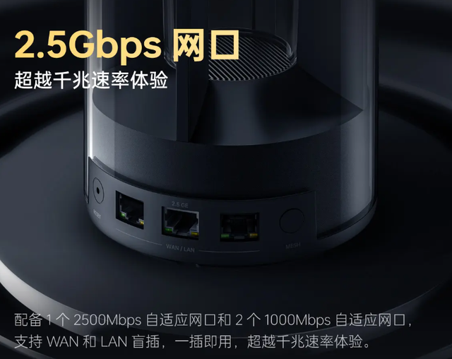 该路由器配有 1 个 2.5G 网口和 2 个千兆网口,所有接口均支持 WAN / LAN 盲插。