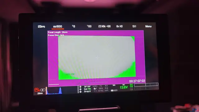 我用了RED监视器用于监测曝光的伪色功能,把全白画面满屏投在屏幕上。摄影机的蔡司otus镜头把光圈收到f8,同时只用镜头中心最好画质的位置成像避免暗角。我们来看看结果吧: