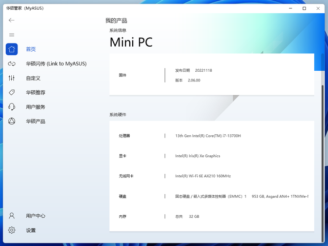 华硕系迷你主机和笔记本电脑都有MyASUS这个管理神器,看下图就知道足够简单,不仅可以辅助排障,还可以接管显示器和路由器这两类自家外设,推荐试试。