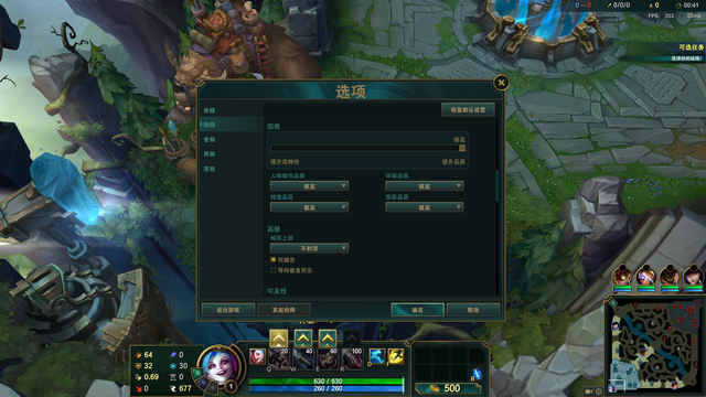 首先是英雄联盟,测试分辨率为2K,画质选择极高,帧数选择不封顶。