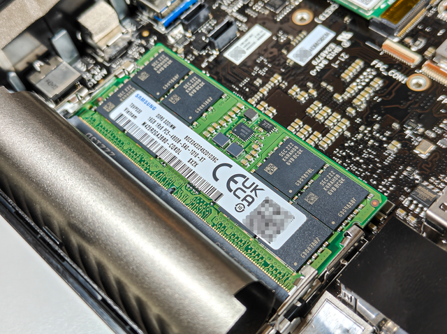 破晓X有双DDR5内存槽位,掀开上面的屏蔽罩就能看到,SO-DIMM安装还是比较简单的,对准后下压卡住即可,再次提醒,强烈建议双内存组四通道。