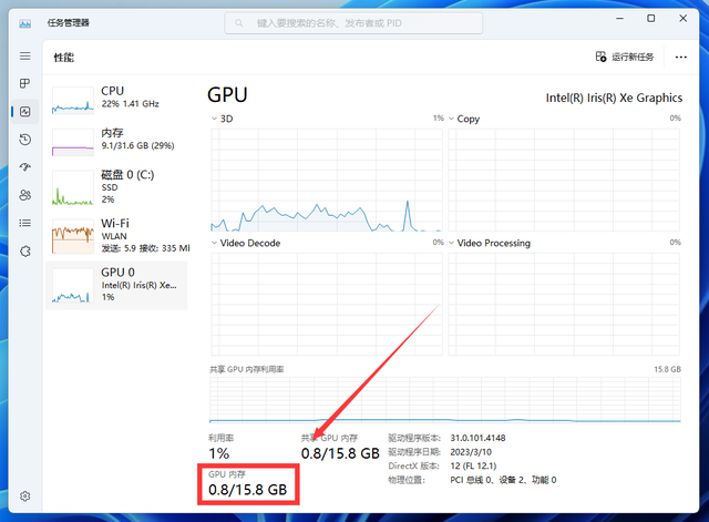 进系统就可以看到,GPU的显存直接变成了15.8GB,不过不用担心,这些内存只有在使用的时候会被占用,并不会直接全部切掉。