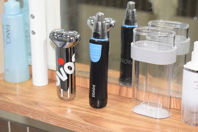这一身“亮甲”上还印有醒目的“POVOS”品牌LOGO。既富有辨识度,又不至单调。剃须刀的整个机身十分的圆润,握持感很舒服。用起来也是倍感丝滑。红色的按键堪称点睛之笔,富有美感。