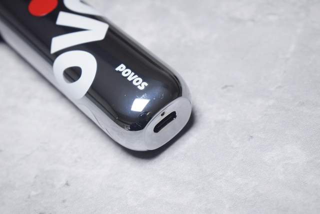 机身底部的Type-C充电口及指示灯:一次充满,可连续使用1个小时,以每次使用3分钟计,足可用上20次。而且充电也方便,即插即用,随用随充。