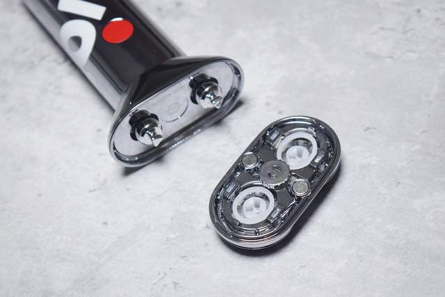 剃须刀的刀头是磁吸式的,每次刮完后清洁起来很方便,而且还可以随心拆装更换不同色彩的刀头,这点还是很贴心的。