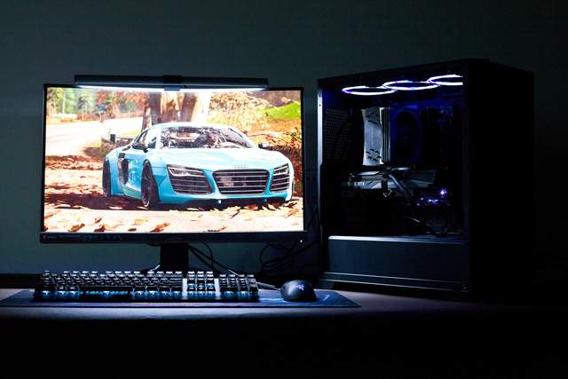 通电以后,机箱内的三把RGB风扇以及主板灯给整机带来了一丝点缀。