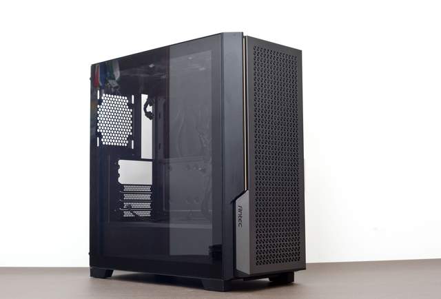 机箱方面,这里我选用了安钛克的P20C机箱,它是标准的中塔式设计,外观方面是正面大面积散热孔以及钢化玻璃侧板的设计,外观和散热方面都可以兼顾得到。