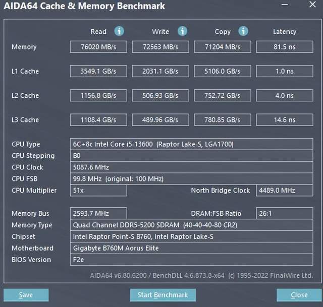 在同时开启XMP以及内存优化黑科技之后,此时内存的AID64读写性能来到了76020MB/s和72563MB/s,延迟下降到了81.5ns,性能提升相当显著。