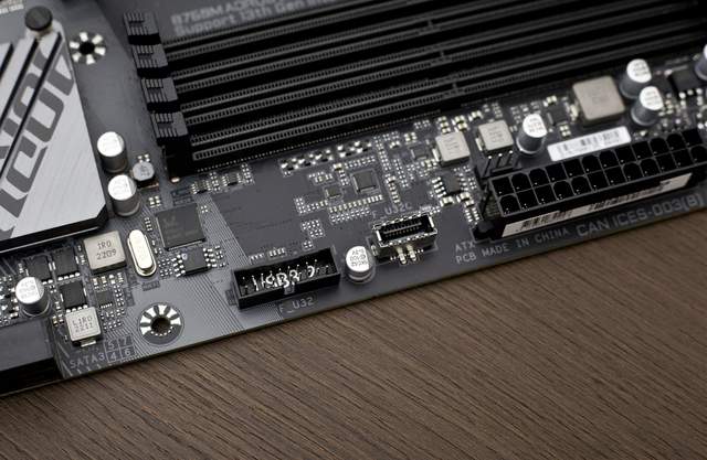 前置的USB接口部分,技嘉小雕B760M AORUS ELITE提供了主流的USB 3.2 19针接口以及前置的Type-C USB3.2 Gen 2接口,各种中高端的机箱都可以轻松支持。