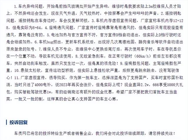 目前,对于车主们的投诉,长安深蓝方面还没有做出回应。