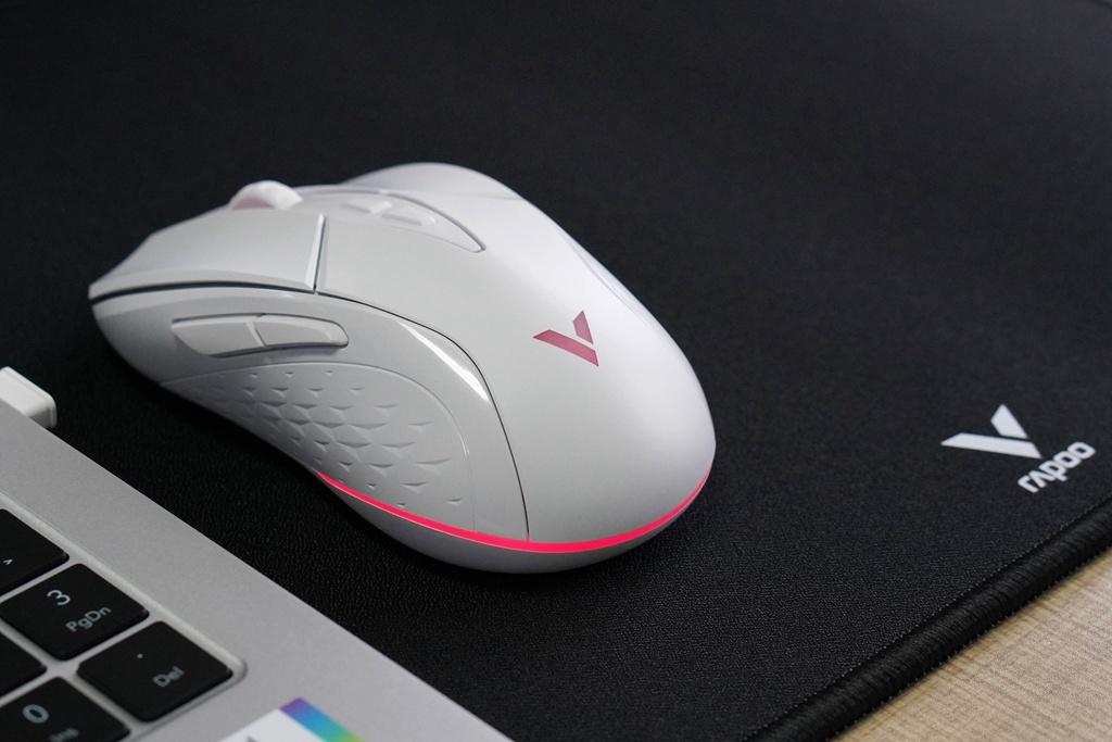 光效是游戏鼠标的灵魂,雷柏V300W在滚轮、logo和尾部三个区域都设计有1680万色RGB背光,点亮后瞬间将电竞氛围拉满。