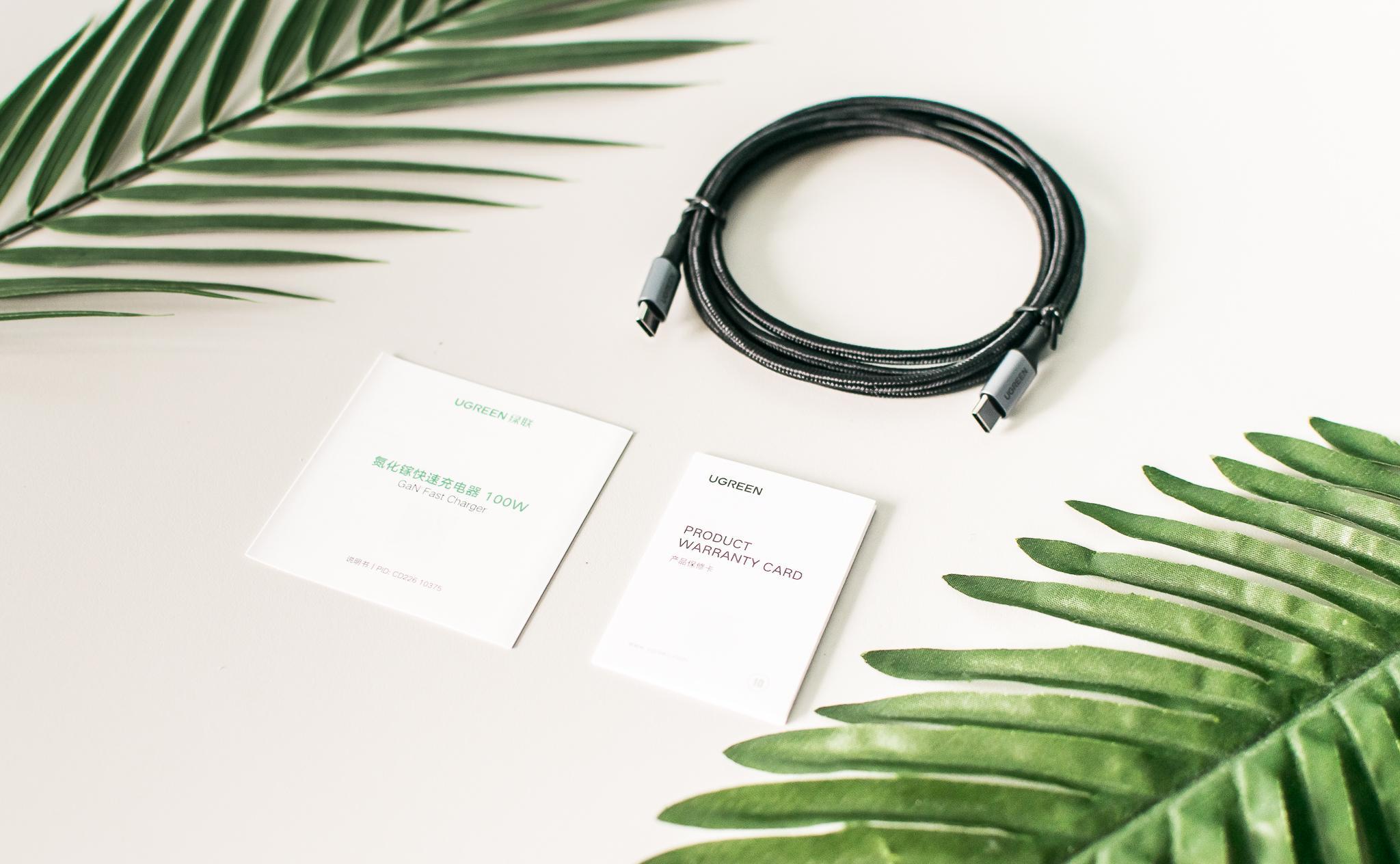 充电线2头都是TYPE-C接口,金属头上面印有UGREEN的字样,看上去非常简约、精致。充电线是编织线,非常牢固,同时弯曲度也很好,拉扯也不易损坏。