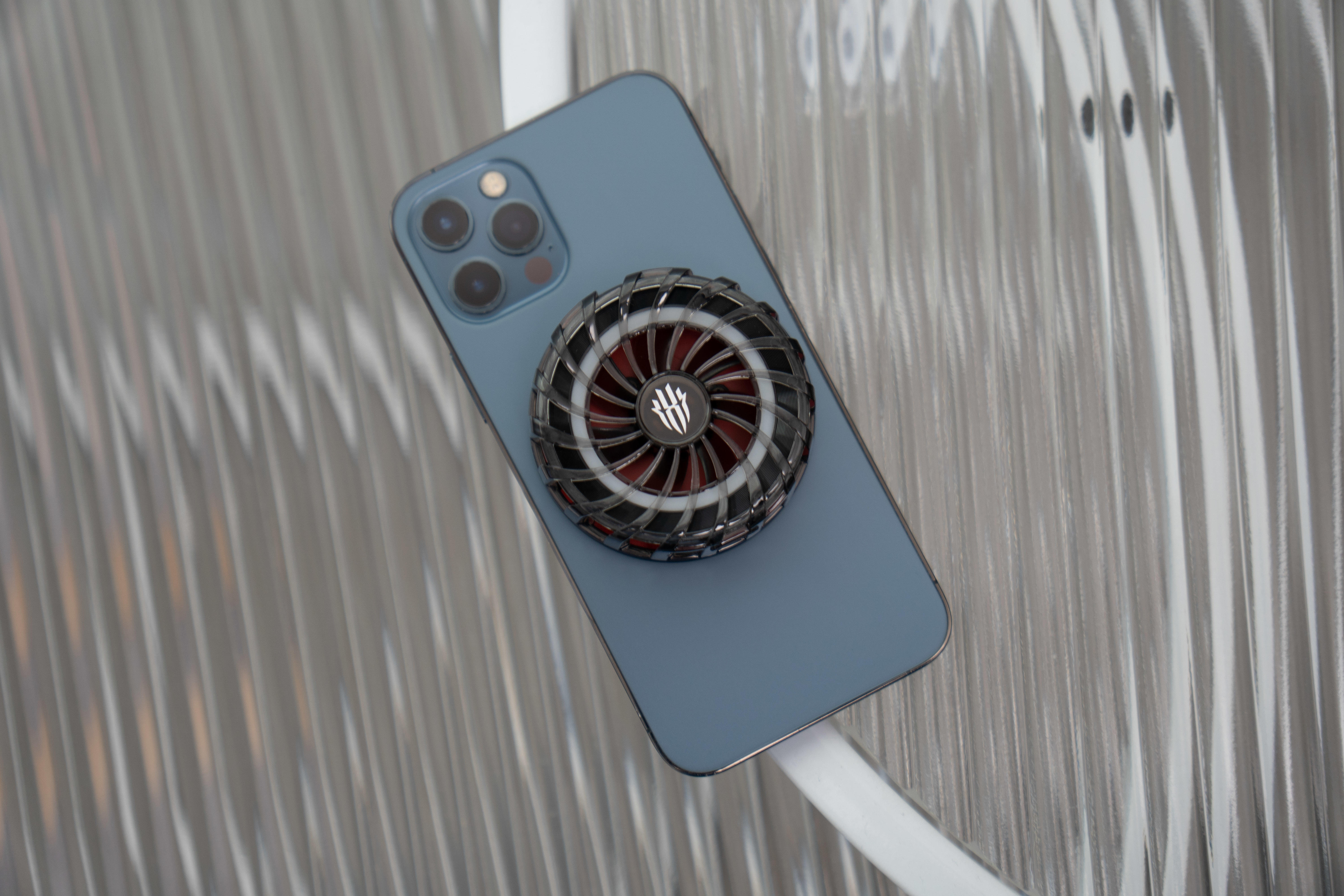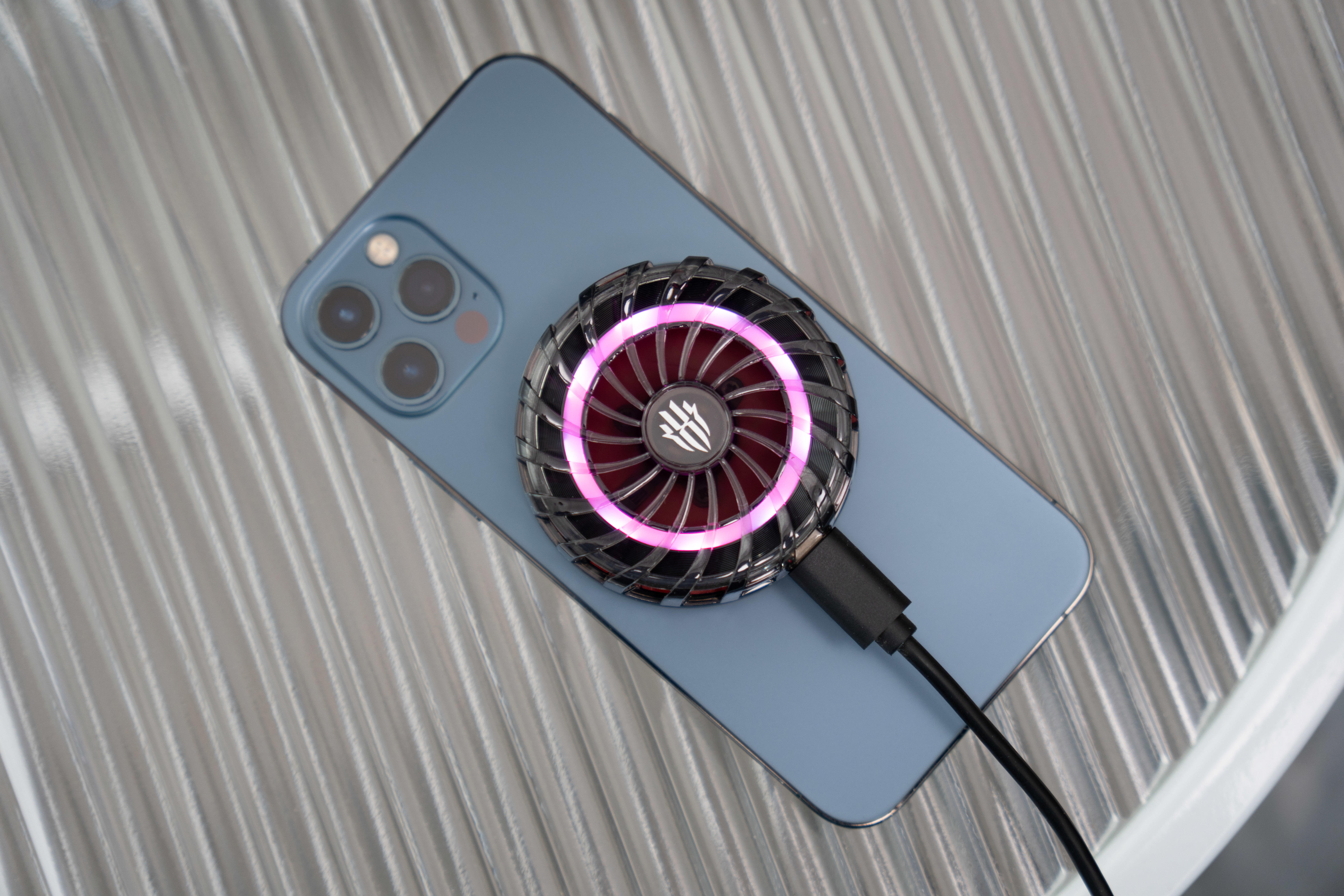 |这里我使用的手机是iphone12pro,在游戏时的热量也是非常的可观,特别是在室外使用时,日常使用都会有烫手的感觉,要是打游戏的话过不了多久就会降频,很影响游戏体验。通电后可以看到炫彩灯效,此时制冷片以及风扇就会开始工作。