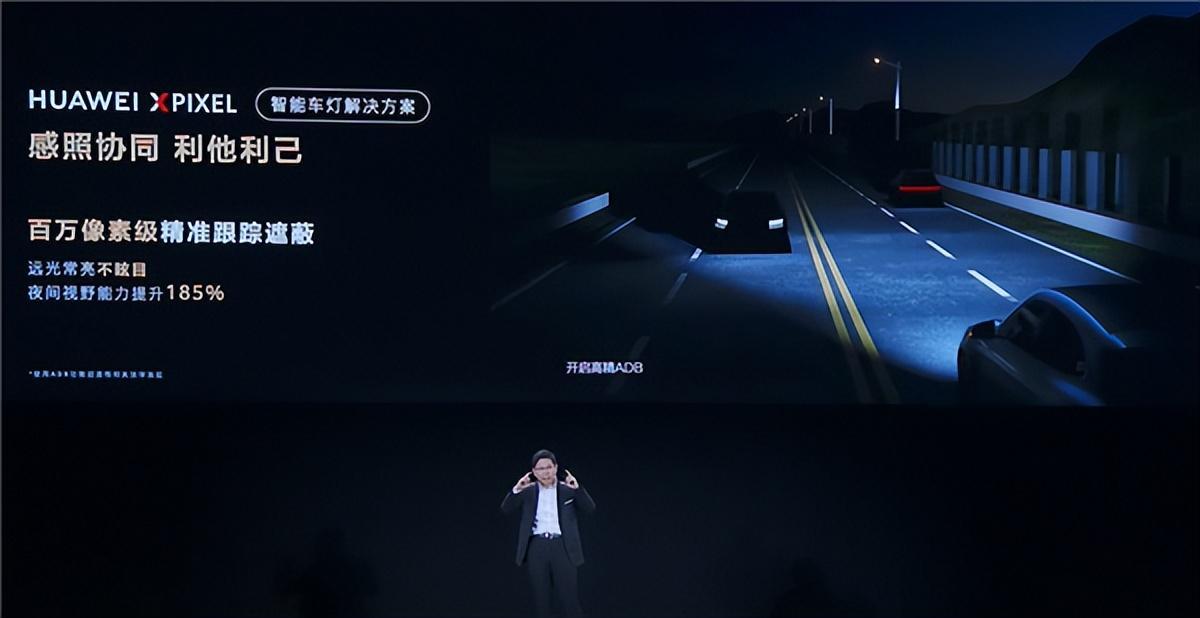 余承东介绍,此次发布会上,华为首发“百万级像素”智能车灯解决方案,为主机厂提供集安全照明、智能助驾、娱乐交互功能于一体的智能车灯,该方案可实现百万像素精细化照明和智慧灯光表达。