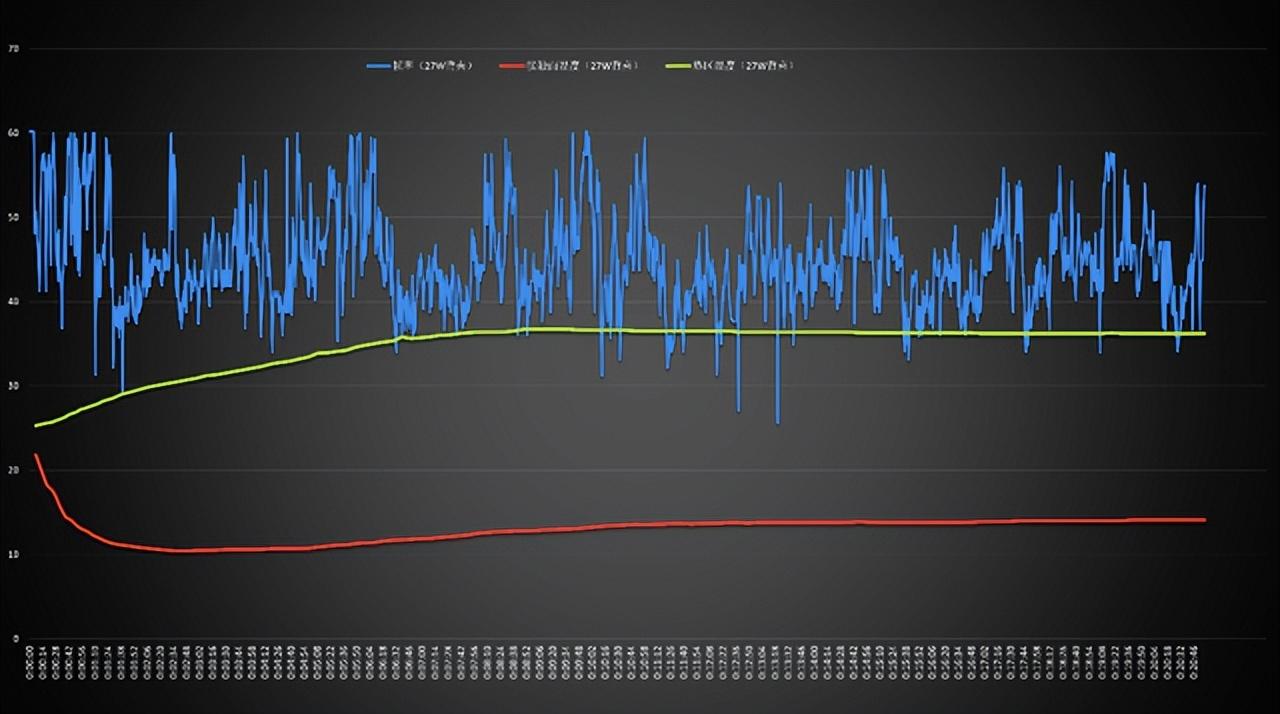 通过实际体验,在最佳的27W工作状态下,档位开关打到低档,3秒能够感受到明显降温,7秒会有冰凉感;而在10W输入的欠佳工作状态下,档位开关打到低档,10秒就能够感受到明显降温,15秒就会有冰凉感。