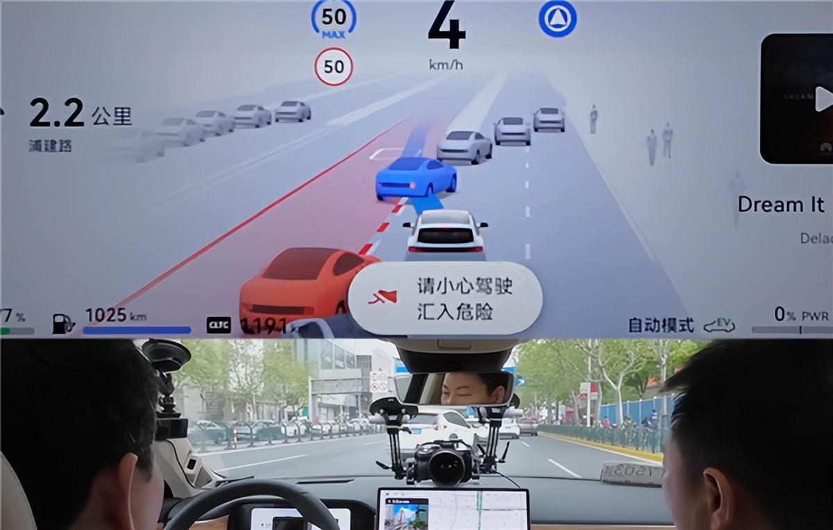 可以看到整个行进过程中,余承东只是将手搭在方向盘上,并未进行任何干预,全程无接管,车子就可以依靠驾驶辅助硬件感知和软件算法自动前进,即便是无保护左转、掉头进隧道、车道合并等较为困难的场景也能轻松应对,甚至连路面上的牵着宠物狗的行人都能准确识别。