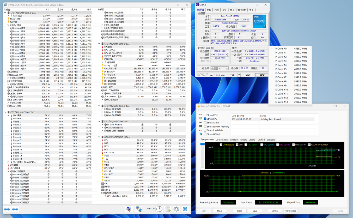 配置单:英特尔i5-13600K处理器、微星MPG Z790 EDGE WIFI主板、影驰RTX 4080星曜OC显卡、星曜DDR5-6800MHz 16G*2内存、HOF Pro30 2T M.2固态硬盘、微星MPG A1000G PCIE 5 1000W金牌全模组电源、安钛克P20C中塔机箱、微星MAG CORELIQUID M360迫击炮水冷...钱算一下,整机配置花了1.7个W,不喜勿喷。