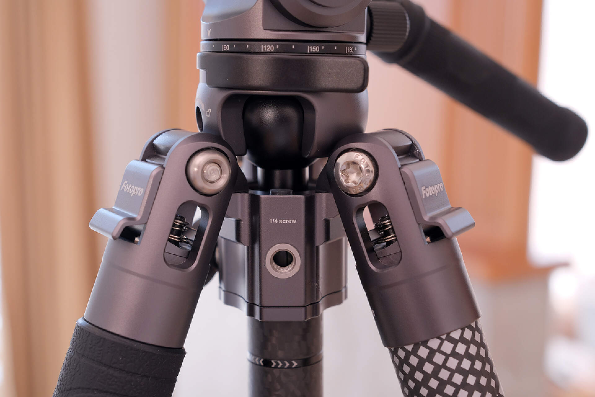 三脚架的脚管撑开角度依然是以往的设计,拇指轻轻按压即可实现不同角度方便稳固地支撑在地面上。