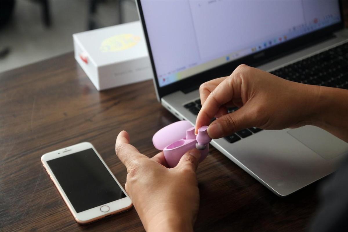 杰科GIEC UniAir这幅耳机产品在耳机盒以及耳机本体上选择的是若隐若现的半透明外壳的设计,耳机盒为圆润小巧的啵啵仓造型设计,握在掌心的感觉并没有想象中那么不堪,女生应该会很喜欢有点可爱、有点小Q的Feel。