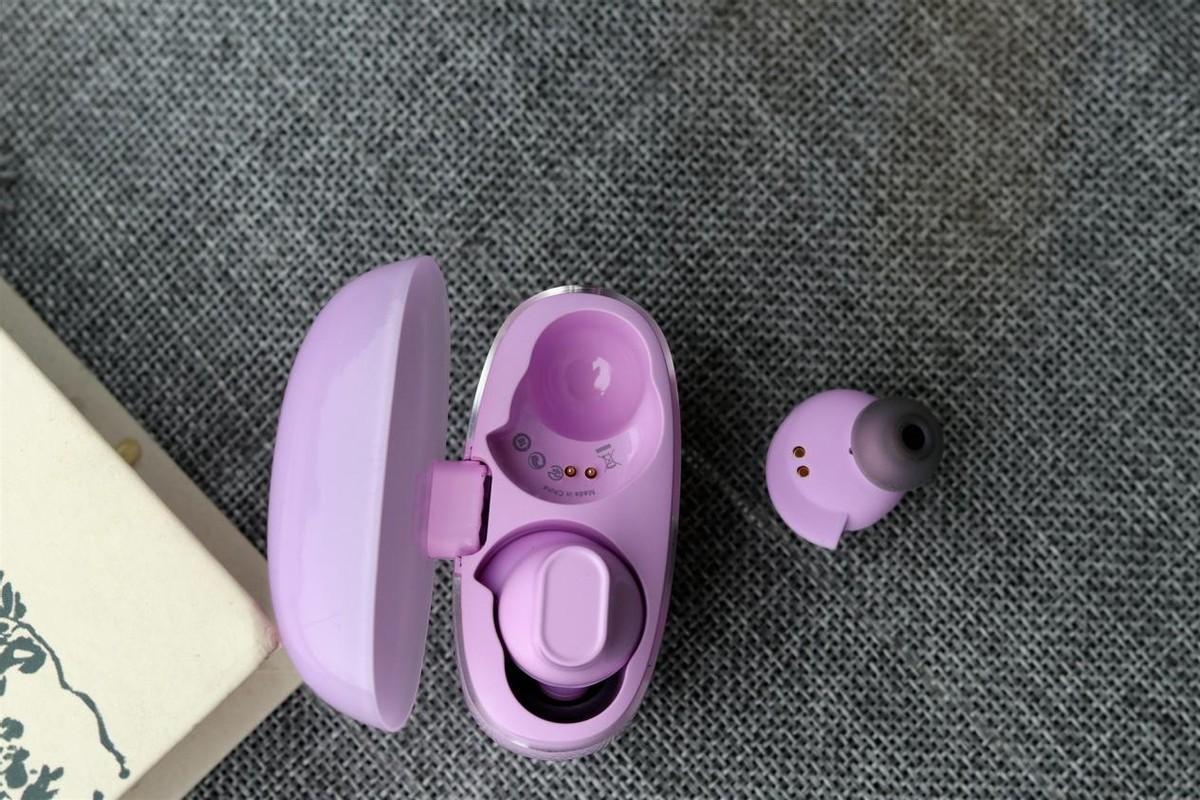 耳机包装为抽屉式结构的设计,一抽一拉即可取出产品本身,取用比较方便,设计还算贴心,而且开盖就能看到“惊喜”的感觉还是非常不错的,加上我这个潋滟紫的配色没有想象中的廉价感,那可不就是惊喜了么?