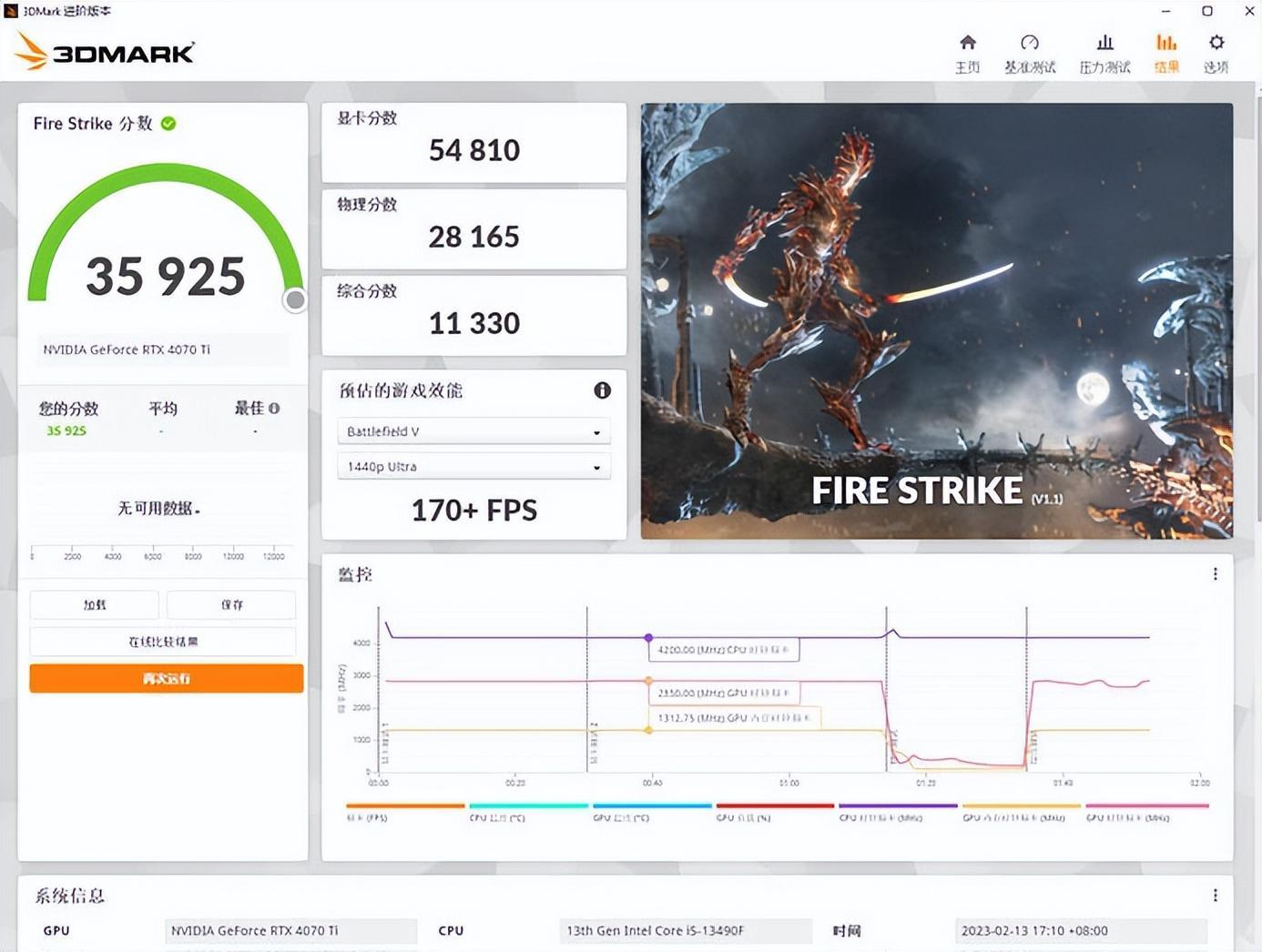 在另一款光追大作《赛博朋克2077》当中,我们把画质与光追的档位开到最高,并打开DLSS 3.0技术,分辨率依然是4K,此时游戏自带测试的平均帧率高达127.08,流畅度相当不错。