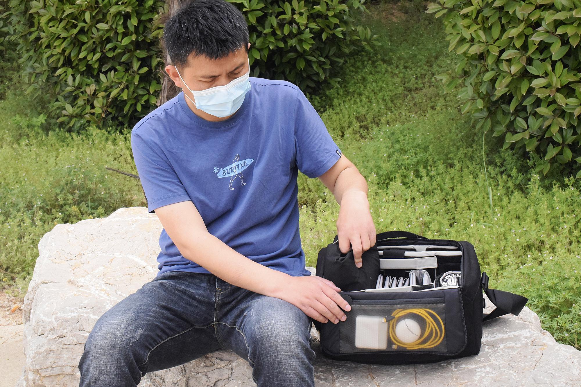 而主仓可通过带有魔术贴的隔板来将一整个空间人为的划分成大小不一的各个分仓。这样的做法在物品的管理的码放上无疑更为高效、合理。像相机、镜头、无人机、蓝牙音箱、充电宝这些数码产品可以独立成仓,与水杯、外套等分隔开来。