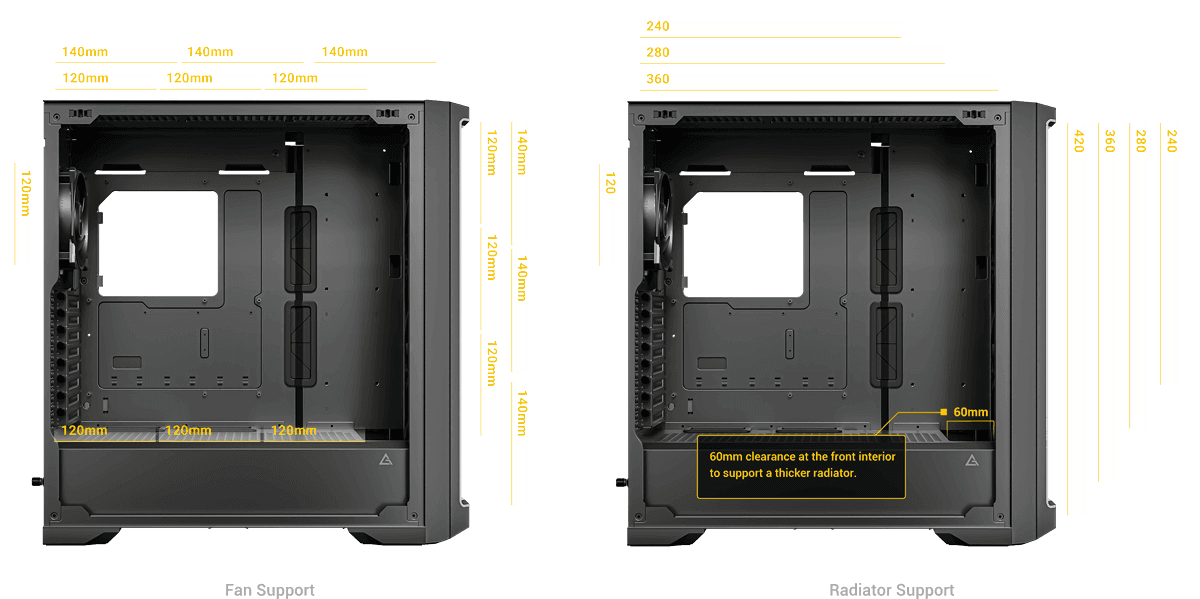 这款机箱的散热系统也很强,有多大10个风扇位,还预装了4个,可以安装多种尺寸的风扇或水冷,保持系统的低温运行。安装的时候机箱拆卸方便,机箱侧板使用快拆设计,可以轻松快捷地更换和清理组件。