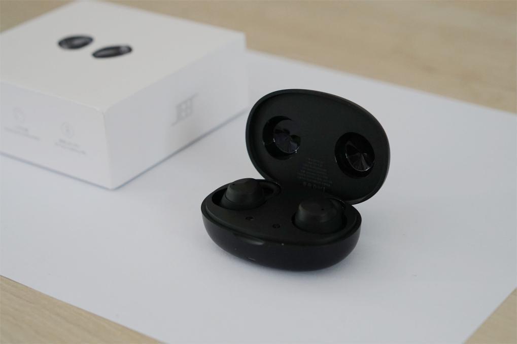 JEET Air 2包装盒为白色,外观简约,看起来非常大气。这款耳机目前仅有黑色款,耳机和充电仓皆为黑色,显得十分沉稳。充电仓为椭圆形造型,外壳摸起来很细腻,质感很好。