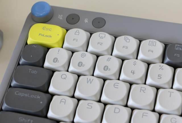 键盘右上角的状态指示灯也会显示出键盘是通过哪种连接模式与设备连接的。