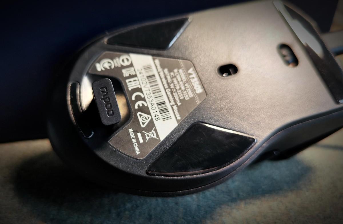 灯的配置方面,这一次雷柏VT350S采用的是雷柏V字LOGO透光灯,以及主键和鼠标机身中间分割带上有三颗小型LED。