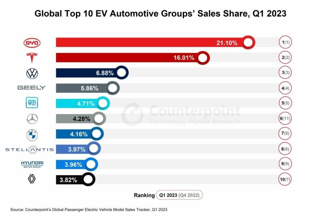 而2023年Q1季度的全球新能源车销量排行榜来看,比亚迪同样是领头羊,排名为第一,而第二名则是特斯拉。从销量上来看,不管是国内还是国外,传统燃油车都开始逐步淘汰了,最主要的还是油价居高不降,而且还不环保,可以说新能源汽车正在占据原有的燃油车地位,这点全球都是有共识的,而且现在新能源车续航里程不再是以前的五六百公里了,可以达到1000公里以上,这点上来看就已经超过了大多数燃油车的续航里程了,对于很多人来说,以前新能源车续航里程少而不考虑,现在续航里程越来越多,关注和选购的人也就越来越多了。