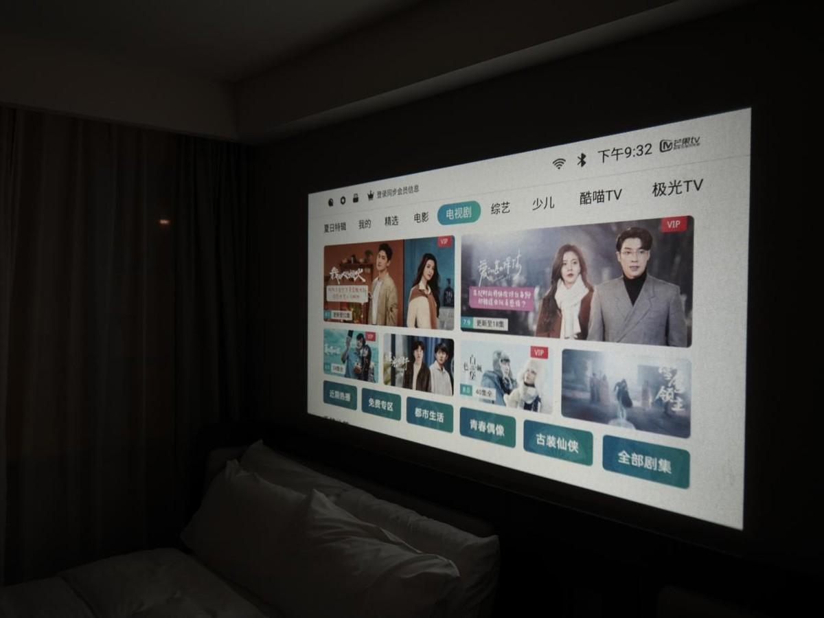 刻刻D7智能投影还配备了智能安卓系统,系统内含盖多平台全量视频资源,还支持WiFi-6、一键无线投屏等操作,而值得多提一下的是,WiFi-6比起前代WiFi技术的主要优势在于速度更快、支持更多频段、支持多个终端同时并行传输、更安全和更省电、功耗更低。无线投屏功能可以通过奇异果TV、极光TV、芒果TV等 App来轻松畅享各种电影和电视剧。而且,你还可以通过当贝市场拓展第三方软件应用,实现更加多样化的使用体验。我就下载了个云视听小电视,用来看 b 站,效果就很不错,遥控器控制反应很快,几乎不会出现延迟。