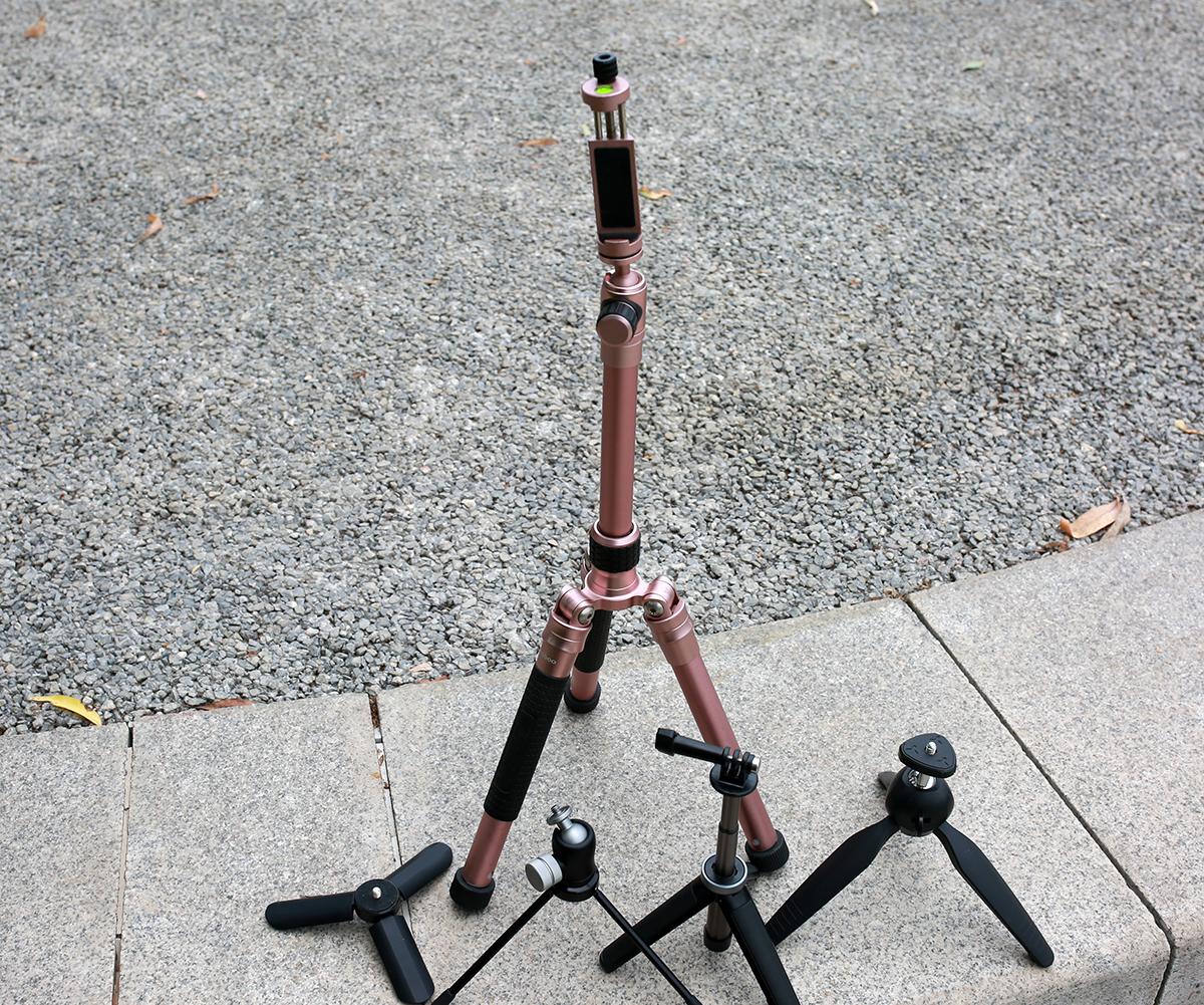 对比另外两款三脚架其最大的特点就高度还可增加。在桌面情况一定的情况下,增高的部分会让拍摄的视角选择灵活性更大。