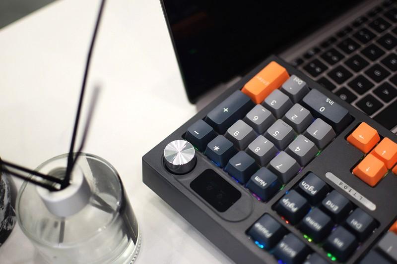 这个就是狼途LT104三模RGB彩屏版机械键盘,104键的布局,其支持三模连接、键线分离设计、4000mAh充电锂电、可连接五台设备,切换更加方便。
