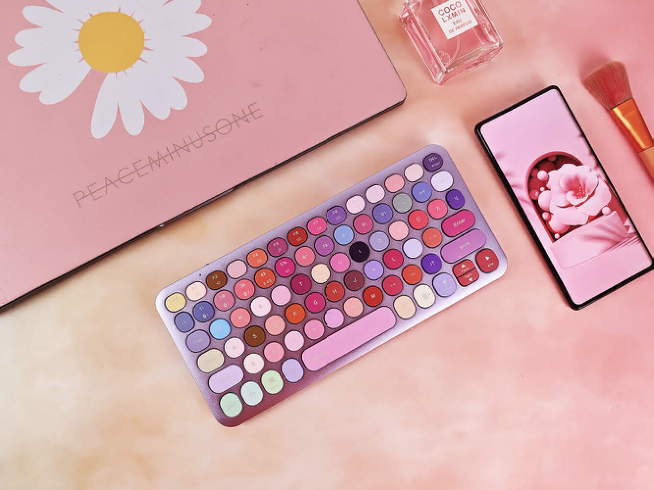 老婆时常抱怨笔记本电脑键盘、触控板不好用,换了机械键盘,又嫌弃机械键盘太笨重、外观丑,不方便携带,重点是不符合她的气质。这不老婆生日快到了,我特意准备了她心心念念的“雷柏ralemo Pre 2 mini彩妆键盘”。键帽是78种彩妆色号,颜值、气质直接拉满;整机轻至211g,一台手机的重量,携带方便;兼容Windows和Mac系统,可连接5台设备,电脑、平板可自由切换,轻松搞定日常工作、出差旅游等多场景需求。