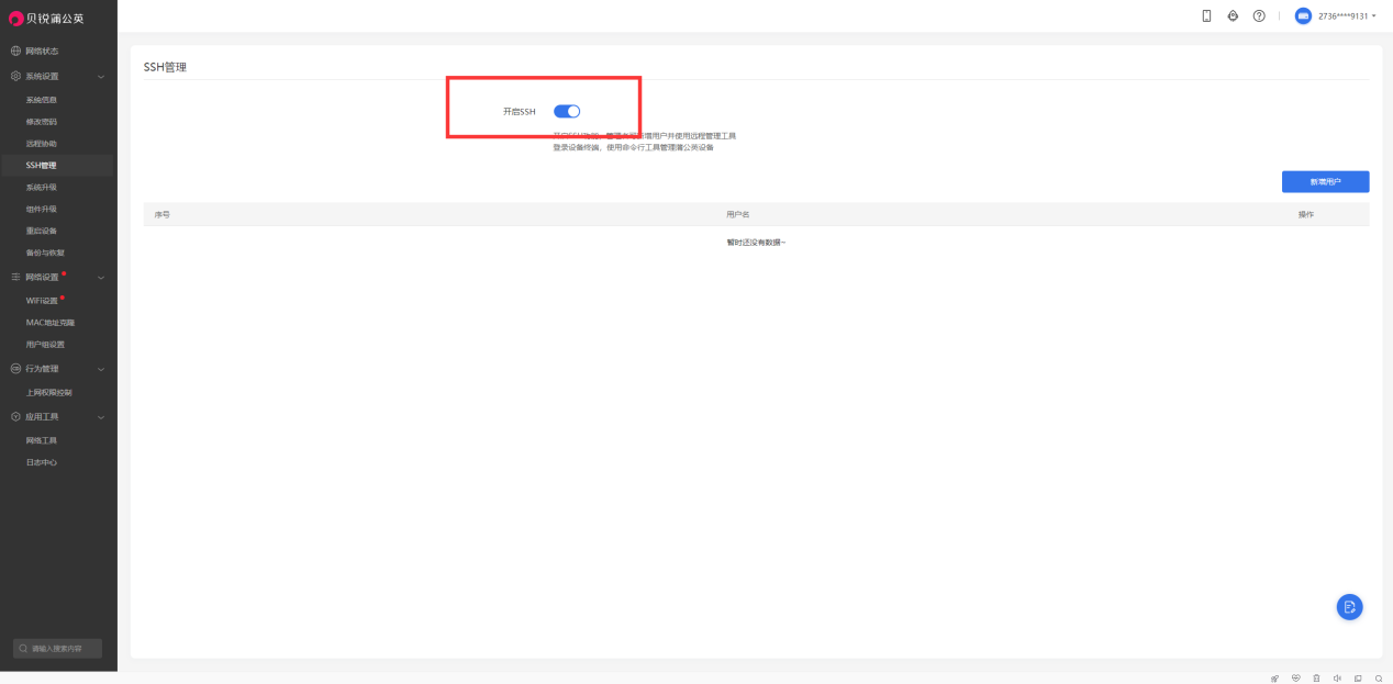 上面还只是单一企业在固定场合的运维管理,如果你作为一个连锁餐饮、服务等行业的运维人员,蒲公英AP也体现了它的专业性:它可以通过开启SSH功能新增用户并使用远程管理工具登录设备终端,使用命令行就可以管理蒲公英设备;它还支持技术顾问远程协助调试设备,云部署、云管理的优点可谓是“疗效显著”。