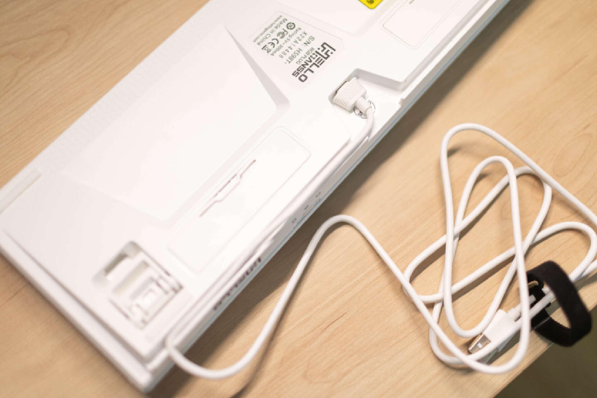 数据线方面,在键盘背部预留专用的导向槽,可以从多个方向隐藏走线,帮助减少在桌面造成凌乱感。