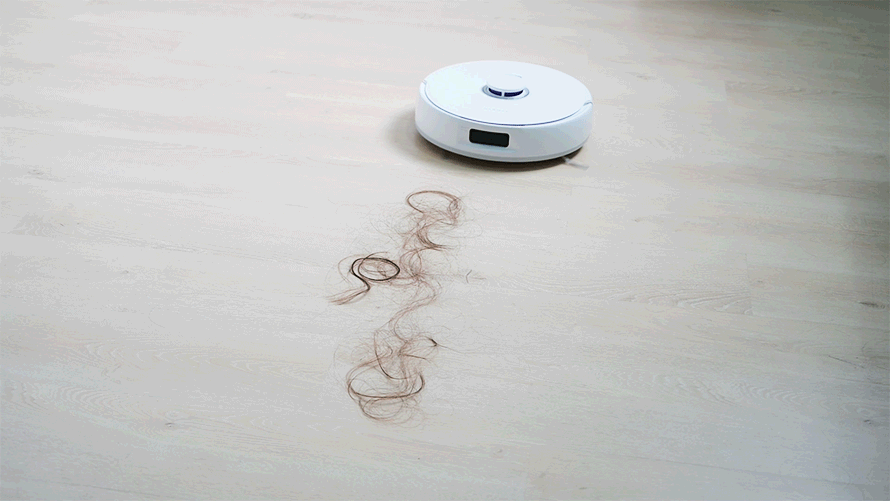 实际测试可以看到,效果还是非常直观的。我们在地上放置了毛发,在使用机器人清洁后,查看滚刷,基本没有毛发残留。有了这样优秀的防缠绕能力,以后在清洁完之后,再也不用把滚刷拆下来清洁毛发了,省心不少。