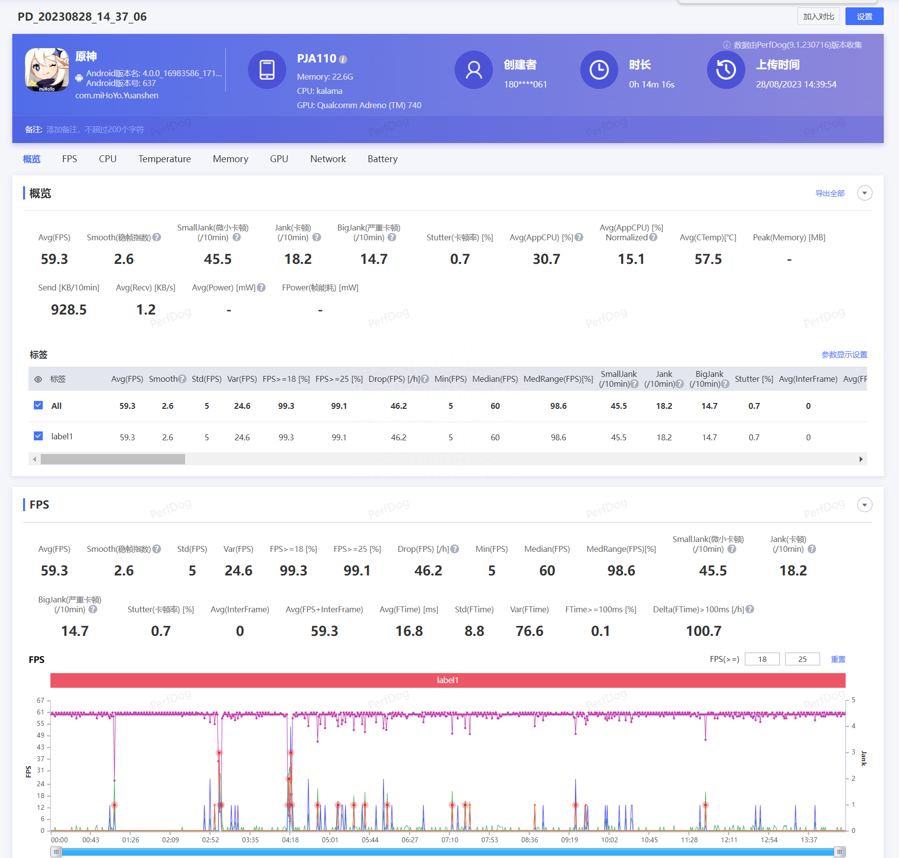 完整的全程记录,平均59.2帧,还是很厉害的哦。
