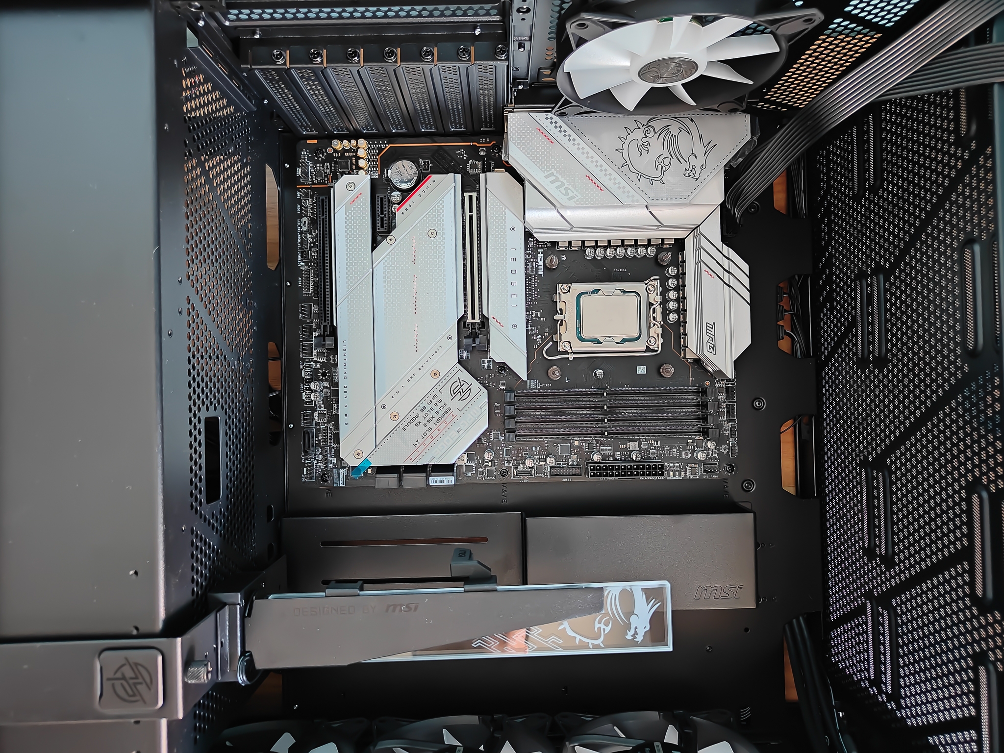 来安装看看,主板用的是微星的MPG Z790 EDGE WIFI 刀锋主板,这款主板具有一体式散热,M.2散热装甲,看上去非常舒适。