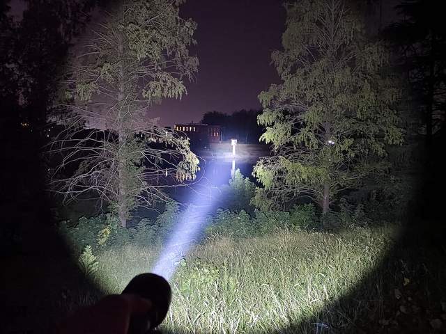 相较于路灯的昏暗,岸边钓鱼佬的微弱灯光,即便是路上开来汽车大灯的亮光,在手电开启的瞬间,都变得微不足道,黯淡无光。这就是玩手电的快乐。当然,日常使用的话,调到中等亮度就已然足够使用了(还是不打扰到TA人为好)。