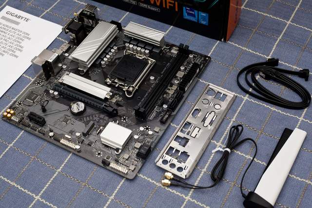 技嘉魔鹰B760M GAMING WIFI 包装并没有多华丽,走得也是简单风格,并没有过多花里胡哨的搭配。主板、说明书、I/O接口挡板、双频无线网卡、2条SATA线为标配。
